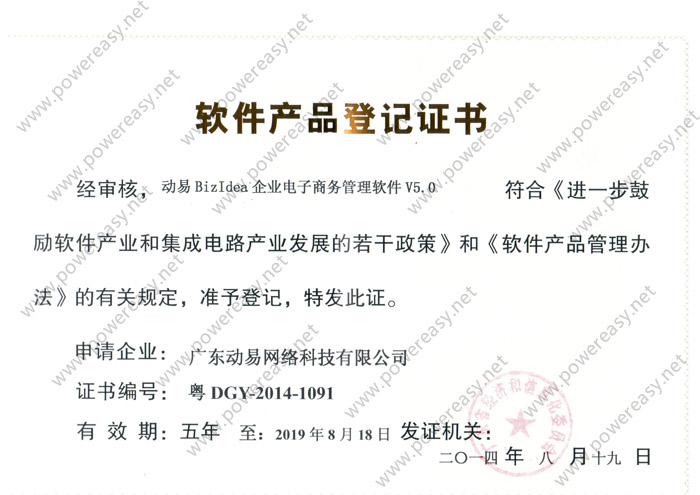 軟件產(chǎn)品登記—動易BizIdea企業(yè)電子商務(wù)管理軟件V5.0