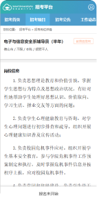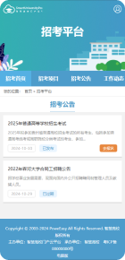 前臺支持顯示招生考試項目列表,點擊項目名稱查看招生考試項目詳情,招生考試項目詳情頁顯示相應(yīng)的招生班級列表,點擊班級名稱查看班級詳情。