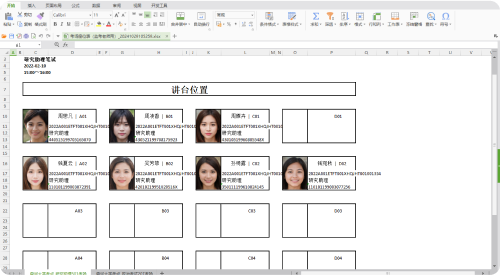 座位表又分為監(jiān)考老師用和張貼用兩種格式:監(jiān)考老師用的座位表的效果與座位安排界面類似,顯示了考生的照片、姓名、準(zhǔn)考證號、報考班級、身份證號碼,以便監(jiān)考老師核對考生信息,防止有人替考;張貼用的則只顯示考生姓名和準(zhǔn)考證號,并可選擇是否顯示報考班級,以防止泄露考生的個人隱私。