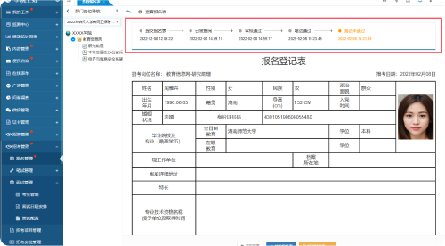 支持對報名表已通過審核(進(jìn)入筆試流程)的考生做專門的筆試管理。