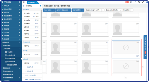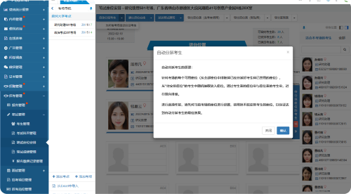 提供座位調(diào)整、自動分派考生座位、手動分派考生、確認(rèn)座位安排、導(dǎo)出座位表(監(jiān)考老師用)、導(dǎo)出座位表(張貼用)、導(dǎo)出簽到表功能。以及為所有考場自動分派考生、確認(rèn)所有考場的座位安排、導(dǎo)出所有考場的座位表(監(jiān)考老師用)、導(dǎo)出所有考場的座位表(張貼用)、導(dǎo)出所有考場的簽到表操作。