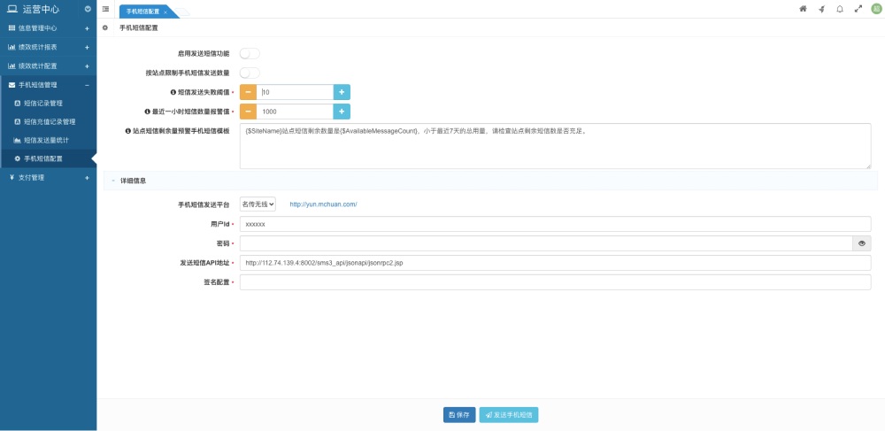 支持短信發(fā)送量統(tǒng)計功能