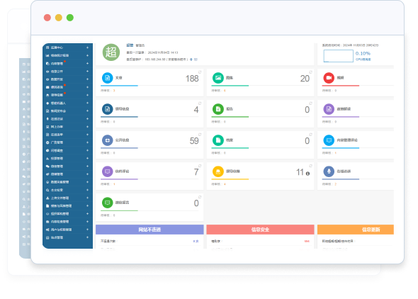我的工作臺首頁依據(jù)用戶權限,集中展示各模塊的統(tǒng)計數(shù)據(jù)、待審核信息及監(jiān)測中心相關數(shù)據(jù),用戶可通過點擊相應數(shù)字直接跳轉至對應模塊進行處理。