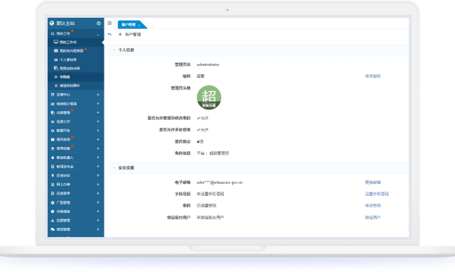 管理員工作臺系統(tǒng)是每個軟件系統(tǒng)的標配功能,主要為每位管理員提供個性化設置功能,包括更新個人信息、修改密碼以及安全退出登錄等。