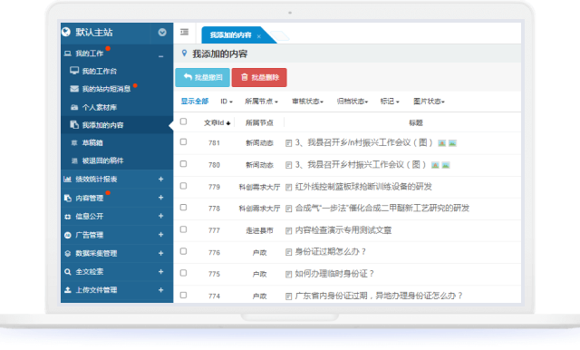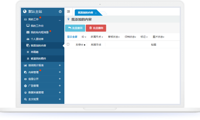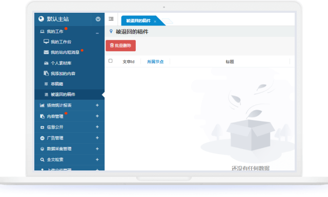 支持按內容模型對被退回稿件進行管理,每種內容模型均精心設計了與之適配的列表頁與查看頁,以提升管理效率與體驗。