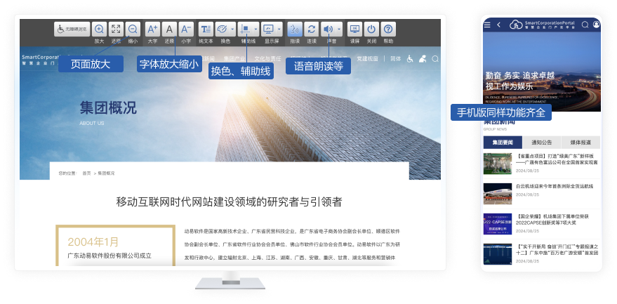 內(nèi)置了無障礙訪問系統(tǒng)和長者助手,讓老年人、功能障礙人士等特殊訪問對象也可以獲得最佳的訪問體驗。認(rèn)真對照無障礙和適老化方面的國家規(guī)范、評測和認(rèn)證標(biāo)準(zhǔn)對頁面模板進行了全面優(yōu)化,以保證符合有關(guān)國家規(guī)范和標(biāo)準(zhǔn)。