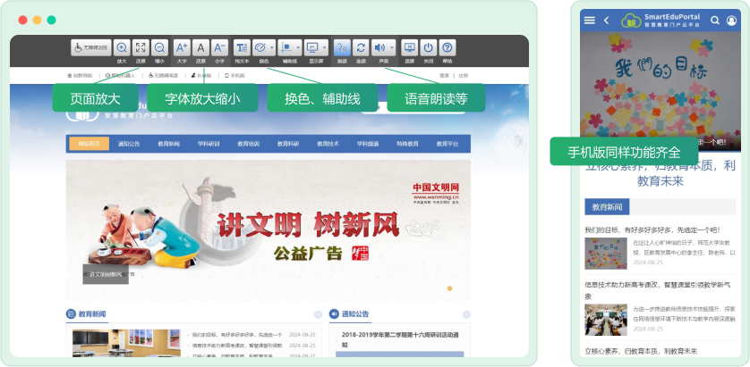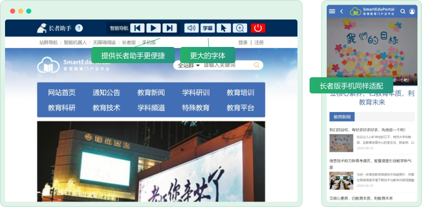 內(nèi)置了無(wú)障礙訪問(wèn)系統(tǒng)和長(zhǎng)者助手,專門提供了長(zhǎng)者版模板,讓老年人、功能障礙人士等特殊訪問(wèn)對(duì)象也可以獲得最佳的訪問(wèn)體驗(yàn)。認(rèn)真對(duì)照無(wú)障礙和適老化方面的國(guó)家規(guī)范、評(píng)測(cè)和認(rèn)證標(biāo)準(zhǔn)對(duì)頁(yè)面模板進(jìn)行了全面優(yōu)化,以保證符合有關(guān)國(guó)家規(guī)范和標(biāo)準(zhǔn)。