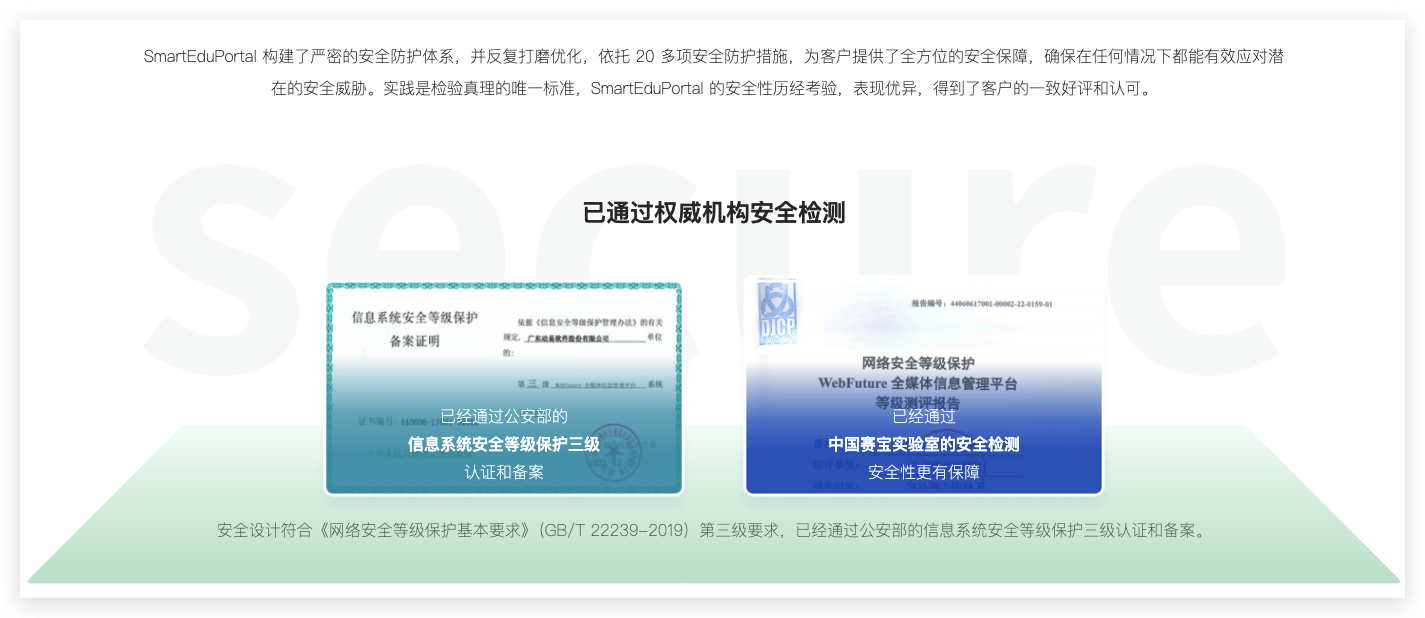 在廣州大學(xué)附屬中學(xué)(“廣大附中”)中學(xué)門戶網(wǎng)站升級中,依托動易WebFuture 的強大安全性能,實現(xiàn)了網(wǎng)站安全等級的全面提升,為網(wǎng)站的信息安全構(gòu)筑了一道堅不可摧的防護墻,提供了全方位、堅實有力的安全保障。廣州大學(xué)附屬中學(xué)(“廣大附中”)中學(xué)門戶網(wǎng)站順利通過了信息系統(tǒng)安全等級保護二級認證。